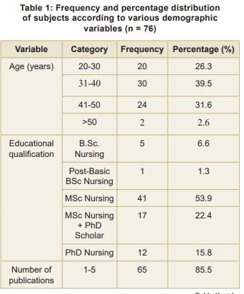 Publication in peer-reviewed journals is integral to advancing nursing science, evidence-based practice, and professional growth (Manal, 2023; Fashafsheh et al, 2020). Despite this, nursing teachers often struggle with academic publishing due to a lack of mentorship, inadequate research infrastructure, and ethical concerns (Sethapong et al, 2023; Bahadori et al, 2016). Understanding the level of knowledge and barriers among nursing teachers is essential to designing interventions that will foster a stronger research culture in nursing education. Publishing in indexed journals is an essential academic responsibility of nursing educators, as it advances nursing science, promotes evidencebased practice and ultimately improves patient outcomes (Publishing ethics; Gunawan et al, 2021) and rectitude.